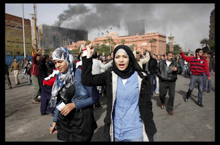 Se una folla si muove da una piazza ad un altra, bruciando i margini della strada, svellendo il cemento ed i sassi per farne un’arma; se degli uomini in un angolo pregano ed insieme coprono con la bandiera di un paese arabo; se le donne urlano a bocca scoperta oppure attendono in casa il ritorno del marito con il cibo pronto. Ci sono cortili di intonaco che divengono moschee, dove al mattino, alla sera si odono le invocazioni; nella piazza al calare del sole svaniscono le donne, le porte delle case rimangono socchiuse, il rumore finisce.